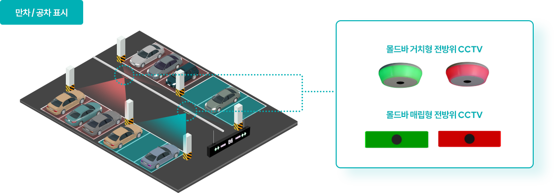 360도 전방위 CCTV를 활용하여 만차/공차 표시로 빈자리에 빠른 차량 주차 유도.